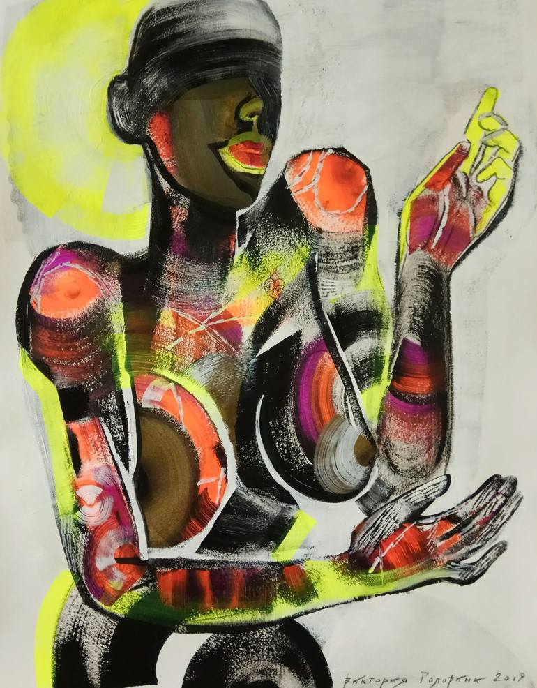 I create paintings for you, my viewers, art lovers and collectors. My paintings are magical sources of knowledge and energy, they are alive and unique. Enjoy. In my artworks I am creating human body language to express feelings and emotions, thoughts and ideas accumulated over the years of life. The naked human body is incredibly powerful text to create a form and spiritualize it, tell about joy and pain, about love and passion, about finding a way, about finding yourself ... An opportunity to look both into the past and into the future. Bend, movement, plastic, sometimes a minimalistic silhouette, I run through fountains of color, I run through black and white ... I try to show the beauty and divinity of the Human Microcosm in the Macrocosm. A white canvas is the beginning of the journey. Much happens around, much happened inside. Swiftly growing and splashing out with the lava of the volcano .. Here the hand leads a line, concentration, momentum; and I am already dissolved in the creation of the new, and already out of time. The intrigue is that I never know what will happen at the end. Always improvisation. Intuitive painting on paper or canvas, translation of the past and the future, here and now through lines, colours and forms. I am free in what I do. I am a Master and I am a Learner. ******* Russian-Dutch Artist Victoria Golovina. Victoria graduated from an art-school under the supervision of a sculptor Peter Podstavkin. Studied and graduated from Moscow Art and Fashion Industry Institute. Member of International federation of Artist and Artist's Union of Russia. Victoria's artworks are kindly accepted to collections of prime State National Museum of Russia. Victoria worked as a prime designer for the first boutique of high fashion in Moscow with brands like Christian Lacroix, Jean Paul Gaultier and Christian Dior. From the year 2000, Victoria totally dedicated her life into the art and she had several art-projects and expositions around the world: in Russia, Netherlands, France, Malaysia and India. Victoria considers herself as a mystic expressionist artist. Victoria"s artworks are improvisation and strong energy message. The female body is a vessel of wisdom, grace and infinite beauty - main object of Victoria"s creative symbolic language. Через изображение обнаженной натуры, язык жестов, мим передаю зрителям понимание человека как вселенной в миниатюре. Обнаженное человеческое тело является невероятно мощным текстом.