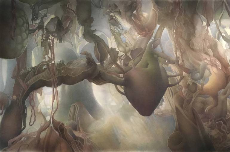 My work does not conveniently fit into a category. There are elements of abstraction and glimpses of "reality". One might guess at surrealism, but I do not think of my work as such. My objective is about taking a fresh look at the traditional landscape. By using this familiar format, a dialogue is created between the viewer and the image. The brain always attempts to organize the lines, shapes and colors it perceives; with no easy reference point, there may be no connection. A recognizable arrangement even though out of the ordinary begins the communication. Born 1949, New York City. U.S.A.I have been an artist since childhood.I consider that the best is still ahead of me. It is my identity. I draw, paint and sculpt. For more than a decade now, my subject matter in art has been based on theories of a futuristic world. All my work has originated from or related to, cast off objects and recycled materials. My first major drawing on paper series, begun end of 2008 into 2009, The Peripheral World (or Peripherals), was first inspired by thrown away paper tissues, and creased papers. I am currently working on my most large and complex pieces to date.