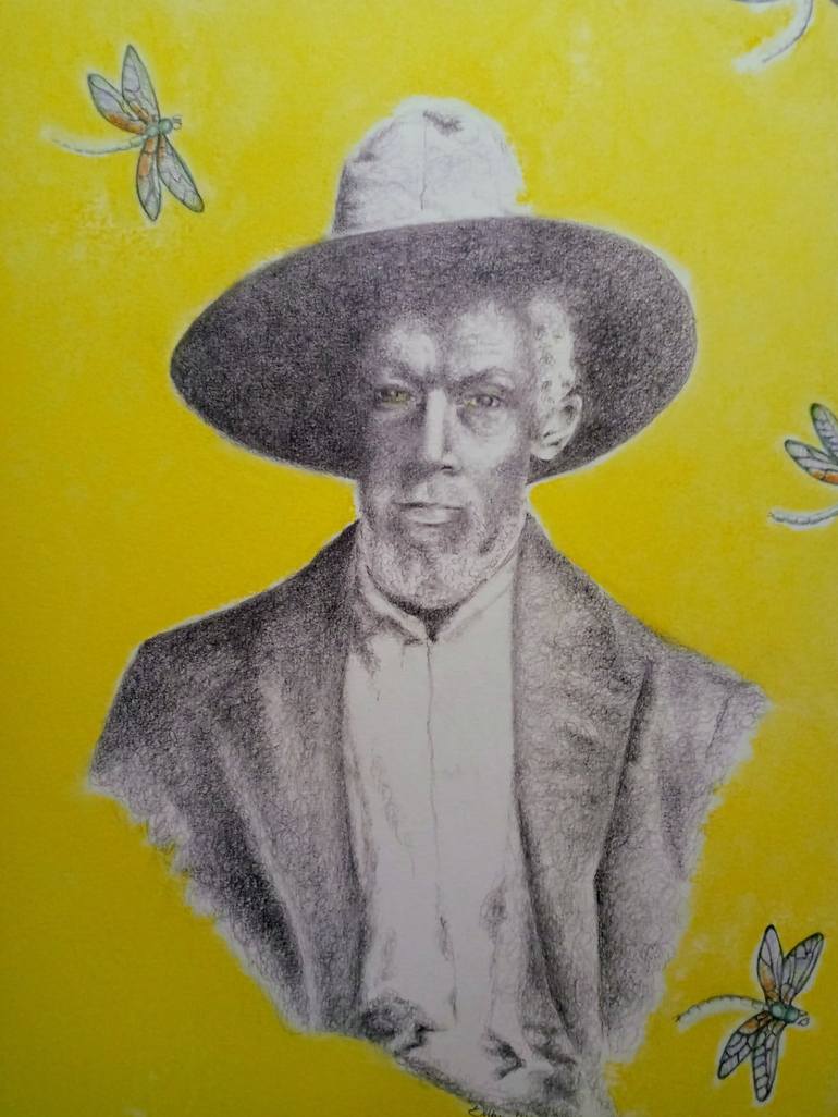 Researching family history led me to a stack of old photographs dating back to the late 1800s. The dragonfly represents self coming to maturity, and the stripping away of illusions. I hope that the viewer realizes that reaching maturity in 1800s was a true act of courage for the African American. I ...