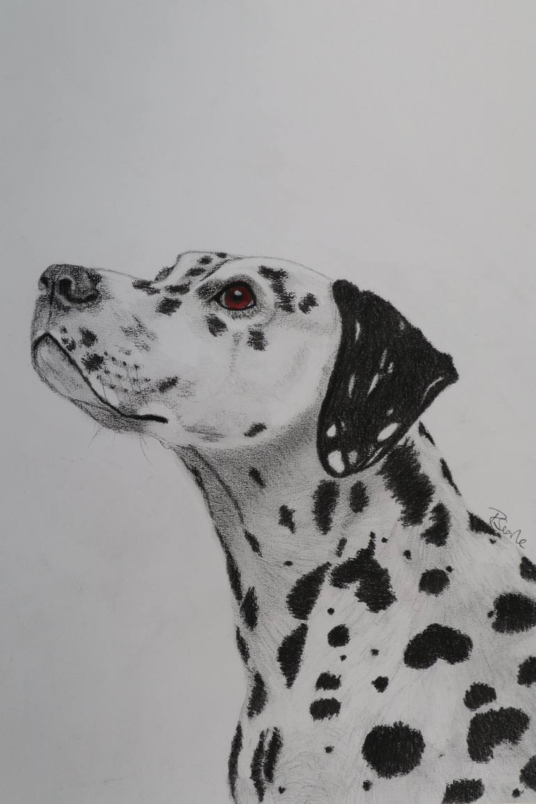 I just love dalmations and was inspired to draw this one in pastel - all in black and white with the eyes emphasised in colour. I hope I've managed to capture some of the character of this dog with my drawing.