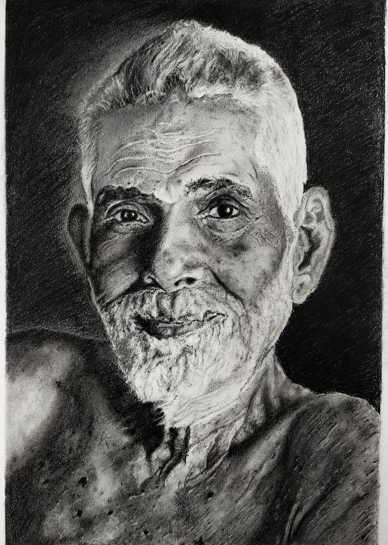 Ramana Maharshi Portrait on Strathmore 400 Bristol Vellum paper made with charcoal & graphite. Ramana Maharshi was an Enlightened guru from India whose teachings have helped thousands of people from all over the world. A look into his eyes is enough to give a glimpse of eternal peace.