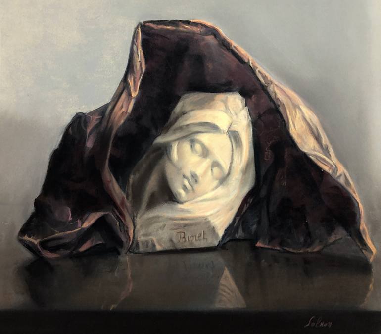 Still life with a sculpture inspired by Leon Binet. Daniel Solnon, trompe-l'oeil painter and pastellist