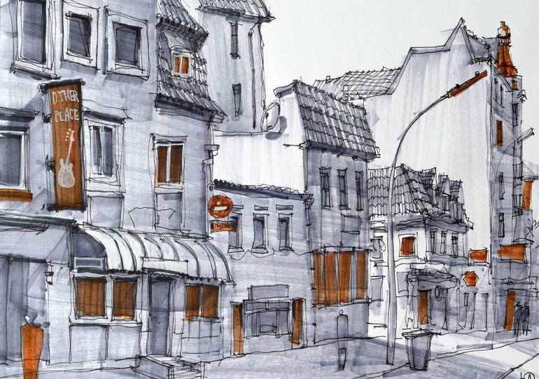 Street in Hamburg, Germany. Artwork is made with markers and ink liners