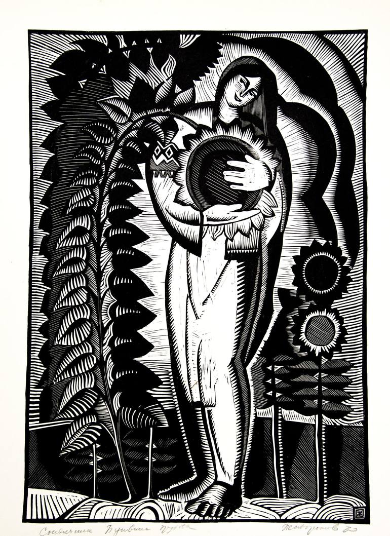 This linocut shows Ukrainian graphics from the era of the Soviet Union. In it, the author demonstrates the powerful school of Soviet graphics and the classical composition of that era. This picture is a real gift for a real collector of real art.
