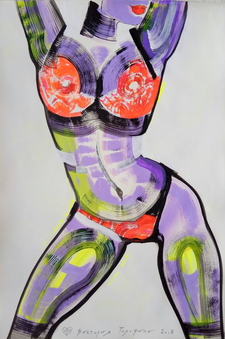 I create paintings for you, my viewers, art lovers and collectors. My paintings are magical sources of knowledge and energy, they are alive and unique. Enjoy. In my artworks I am creating human body language to express feelings and emotions, thoughts and ideas accumulated over the years of life. The naked human body is incredibly powerful text to create a form and spiritualize it, tell about joy and pain, about love and passion, about finding a way, about finding yourself ... An opportunity to look both into the past and into the future. Bend, movement, plastic, sometimes a minimalistic silhouette, I run through fountains of color, I run through black and white ... I try to show the beauty and divinity of the Human Microcosm in the Macrocosm. A white canvas is the beginning of the journey. Much happens around, much happened inside. Swiftly growing and splashing out with the lava of the volcano .. Here the hand leads a line, concentration, momentum; and I am already dissolved in the creation of the new, and already out of time. The intrigue is that I never know what will happen at the end. Always improvisation. Intuitive painting on paper or canvas, translation of the past and the future, here and now through lines, colours and forms. I am free in what I do. I am a Master and I am a Learner. ******* Russian-Dutch Artist Victoria Golovina. Victoria graduated from an art-school under the supervision of a sculptor Peter Podstavkin. Studied and graduated from Moscow Art and Fashion Industry Institute. Member of International federation of Artist and Artist's Union of Russia. Victoria's artworks are kindly accepted to collections of prime State National Museum of Russia. Victoria worked as a prime designer for the first boutique of high fashion in Moscow with brands like Christian Lacroix, Jean Paul Gaultier and Christian Dior. From the year 2000, Victoria totally dedicated her life into the art and she had several art-projects and expositions around the world: in Russia, Netherlands, France, Malaysia and India. Victoria considers herself as a mystic expressionist artist. Victoria"s artworks are improvisation and strong energy message. The female body is a vessel of wisdom, grace and infinite beauty - main object of Victoria"s creative symbolic language. Через изображение обнаженной натуры, язык жестов, мим передаю зрителям понимание человека как вселенной в миниатюре. Обнаженное человеческое тело является невероятно мощным текстом.