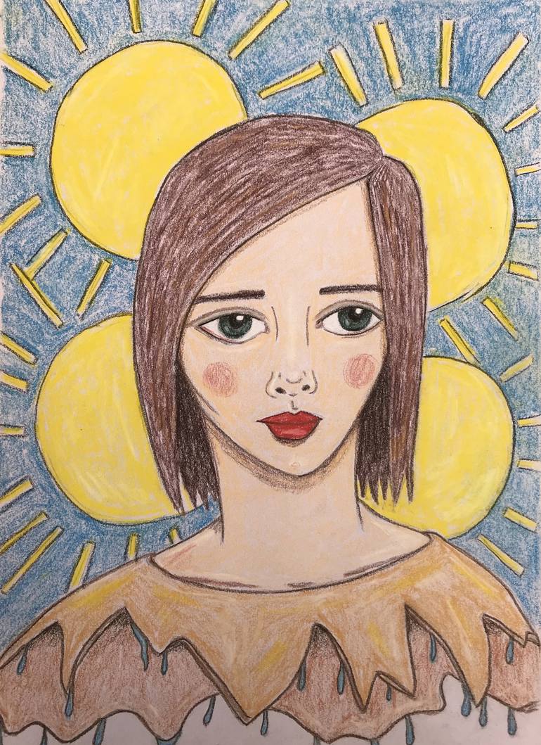 Original surreal, illustrative portrait drawing, in pastel on paper.