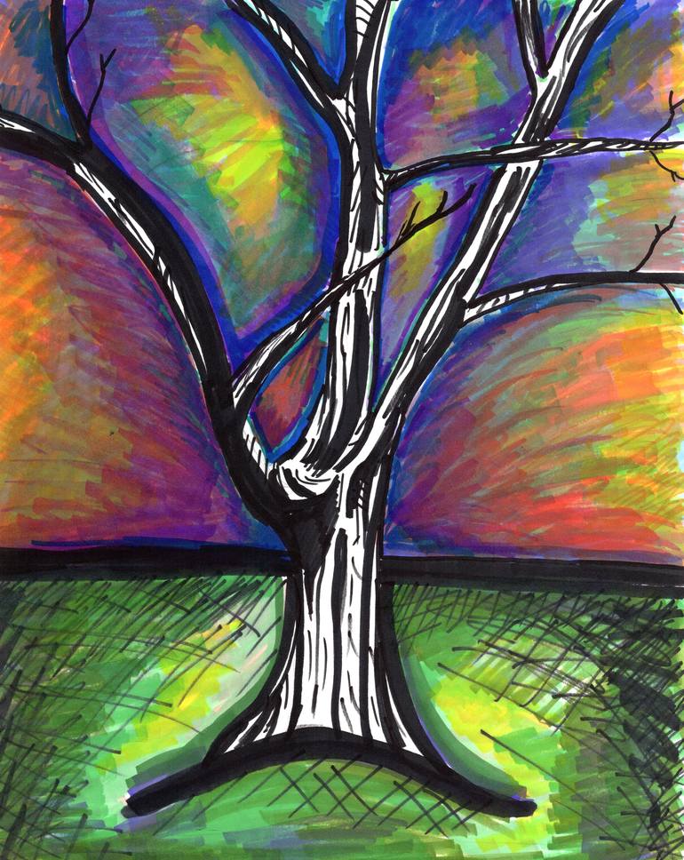"Sunset Tree" was drawn at my grandmother's house. She has a lovely backyard that includes part of a forest. When I was young I had many adventures out there. The last time I visited I drew this view of one of the trees during a sunset. I wanted to create a lot of vitality with the colors and lines,...