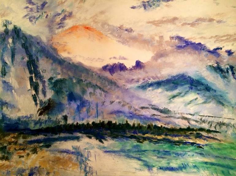 Swiss alps in chalk pastel; inspiratio from JMW Turner; photograph taken in 2016; drafted with variety of musical influences (Clapton, Dylan, Doors, and The Decemberists)