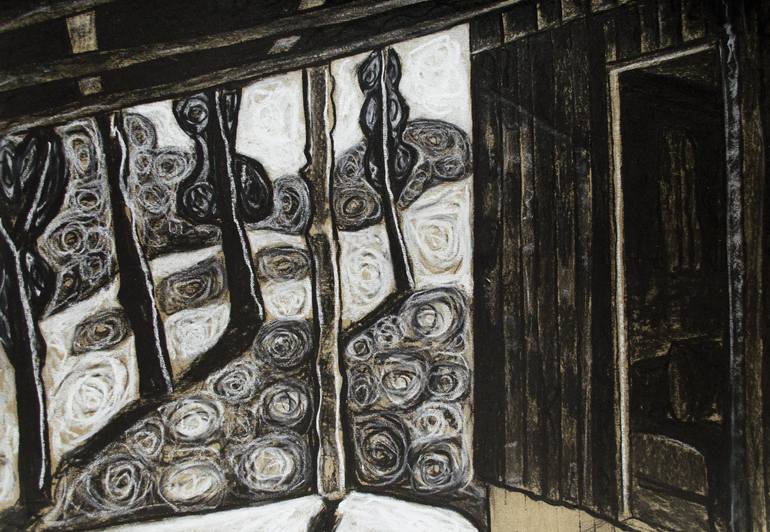 Charcoal and chalk on paper. The drawing was made in the summer of 2020 on the property of my friend. A drawing of his terrace in the woods done in my personal style. The drawing has a clean edge of paper around the drawing size 1cm as you can see in the photos. Understand that the most important t...