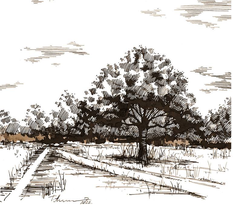 The big tree. This ink drawing is part of a collection of sepia landscape. It conveys the emotions and impressions from the mother nature. The world around us inspires for our creativity, you just need to take a closer look. The drawing is signed and accompanied by a Certificate of Authenticity.