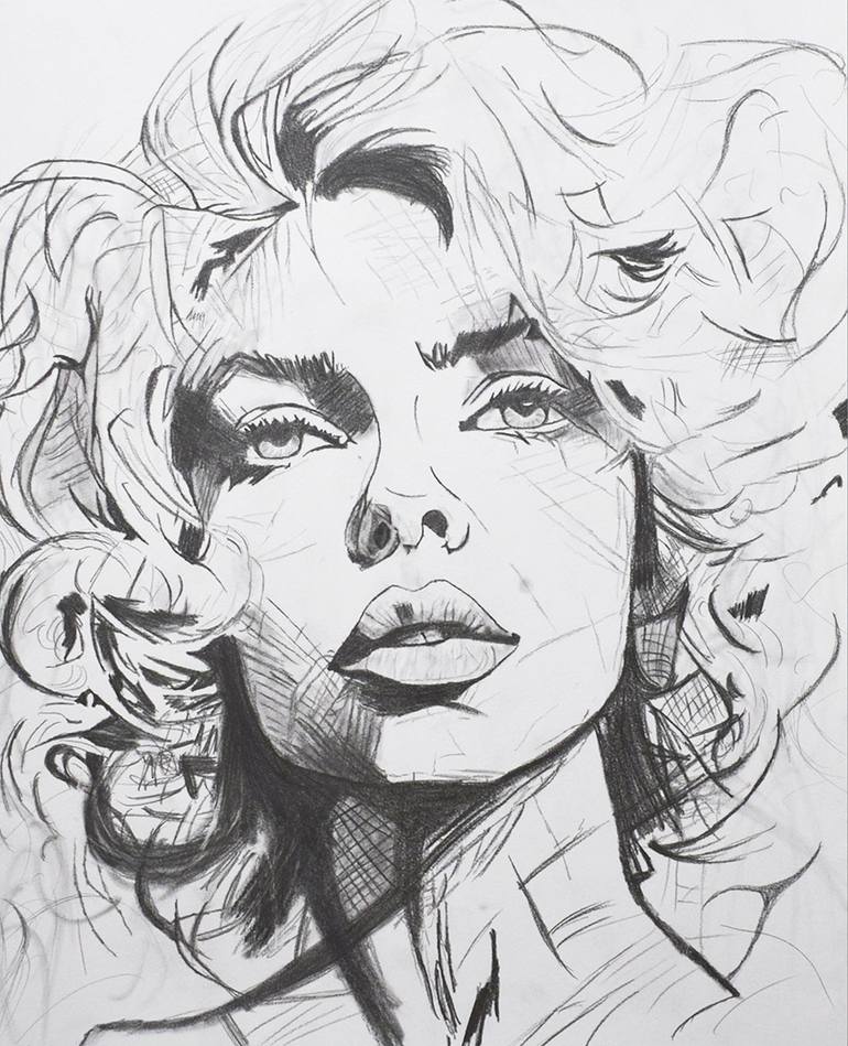 "Blonde Bombshell" Mixed media,pencil and charcoal on paper. In my Marilyn Monroe pencil drawing, I sought to encapsulate the timeless beauty and allure of the iconic Hollywood star. Inspired by Monroe's charisma and elegance. Framed and ready to hang on. Frame size: Width - 17,5inch , Height -...