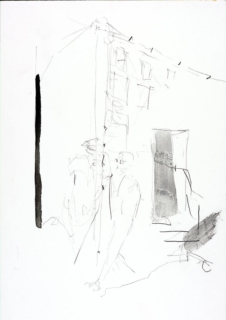 The story of the work is in it's title. A small, gentle drawing by an artistic voyeur—just for a little smile. The work is done on high quality well textured drawing paper.