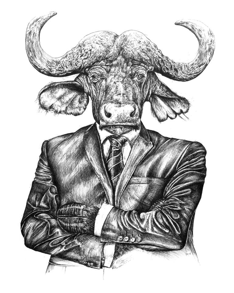 Inspired by the bull and bear movement of the stock market, this buffalo in a business suit means business.