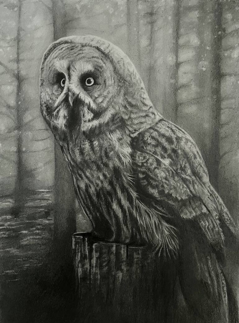 This beautiful owl was chosen by my son. I had several ideas and references of what I wanted to draw next, but couldn’t decide. I’m so glad my son stepped in and made the decision for me, I love the darkness and mystery portrayed in this wonderful winged creature.