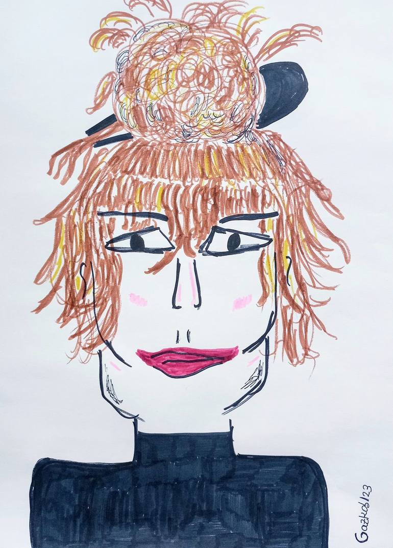 Our attractive protagonist with her natural hair, minimalist make up, discreet black polo neck keeps her real image without surgery and other kind of ornaments.