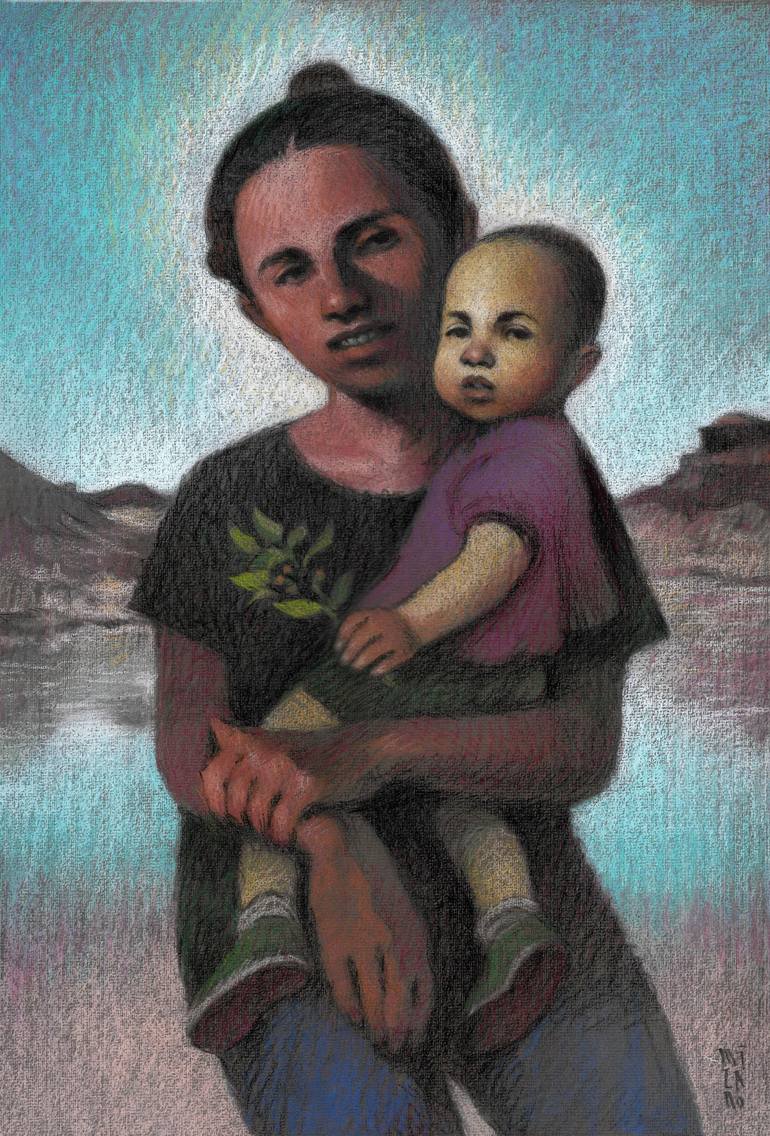 Mother and son, in an environment of ancient ruins. Pastel on Ingres 100% acid free paper, not framed.