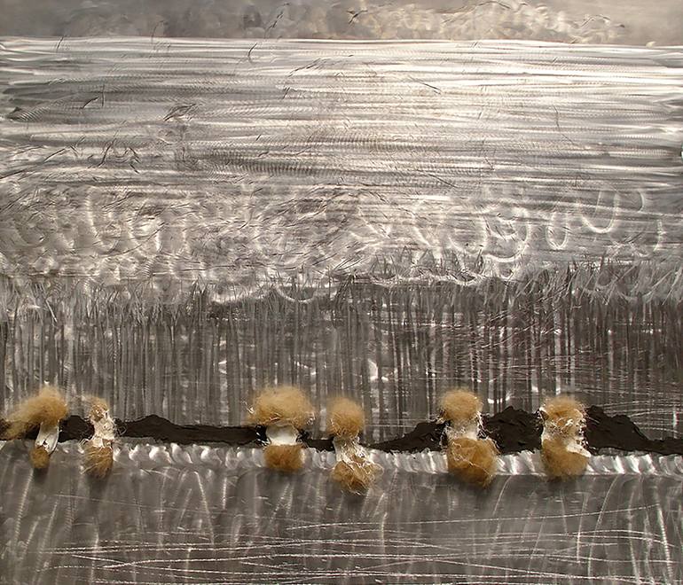 The six castaways consists of mixed media where I incorporate something industrial paint (black and white) and hair of dog chow-chow, but above all stands on aluminium metal stand, different strokes of drawings made by friction with abrasive tools. The work alludes to the fantasy of six castaways id...