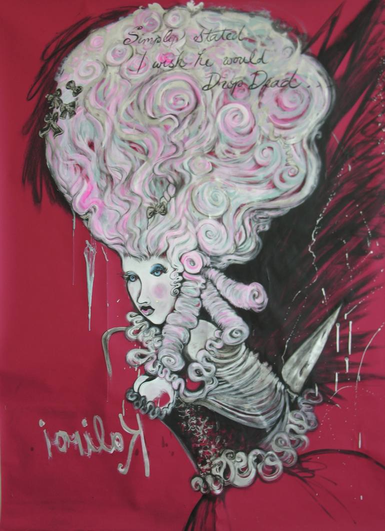 This is part of a series called 'Unicorns & Pompadours' . It came about shortly after I had completed the unicorn drawings while also being inspired by the film 'Amadeus' which I watched intermittently while I worked over and over again. I came home from work as a scenic painter in tears and frustra...