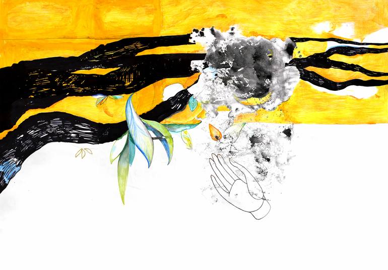 One day I received a letter from my close person, and he write there this sentence "Drink Mango coffee from trees in the body of the eternal God". And I remembered these words. This work about love, how we can love God and how He love us. Yellow jungle of love