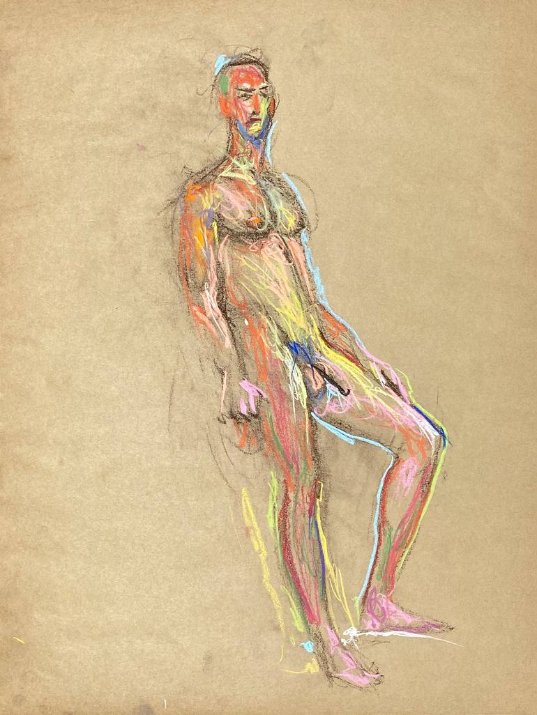 This 20-minute pastel drawing was made on July 24th, 2019, at Leslie & Lohman Studio, New York. Artwork Original Specs: - Medium: Pastel - Material: #840 kraft paper, Borden & Riley; 60lb, 98g/sm - Fixed with Matte Fixative, Blick Art Materials - Signed