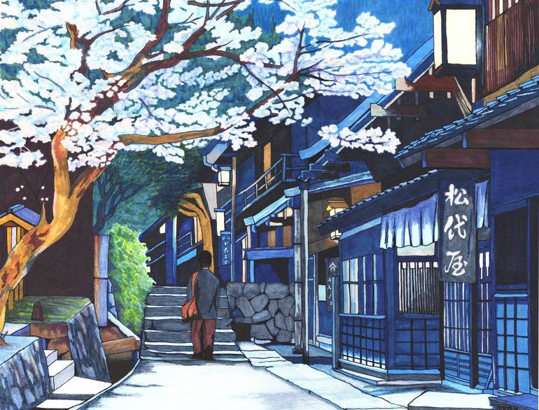 This illustration is for my series "A Year in Japan" of which there are 12 artworks - one for each month. It was created using Copic markers on watercolour paper. This series captures everyday scenes in Japan in an attempt to convey the Japanese phrase 物の哀れ 'mono no aware'. This refers to the ephem...