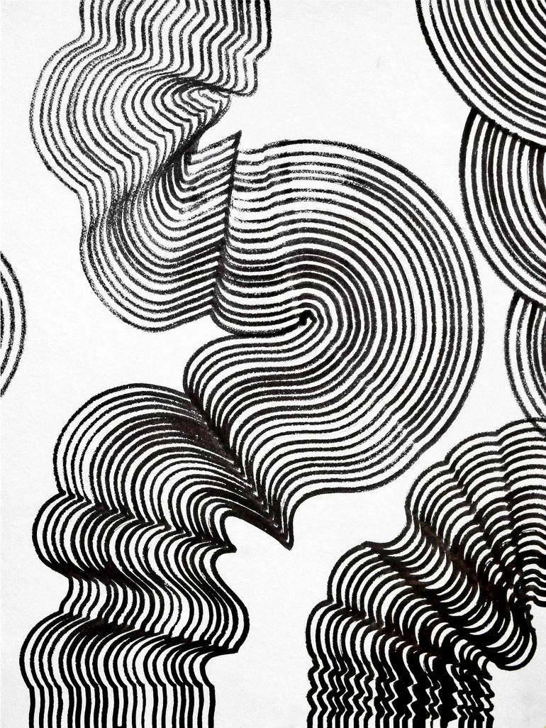 Black ink on archival paper. Symmetrical lines drawn on paper to reflect on the behaviour of how sound waves travel.