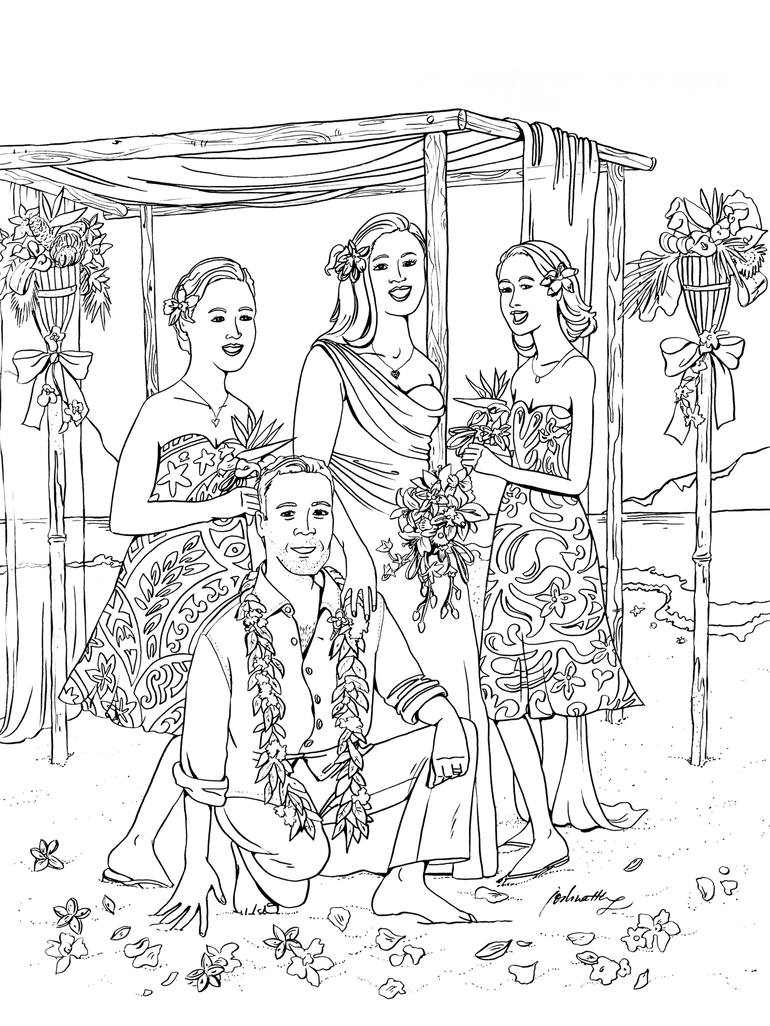 Ahh, the trade winds are blowing and it's your wedding day in the Hawaiian tropics. Celebrate this sunny beautiful day surrounded by lush flowers and sand between your toes. Congratulations!! This is part of a series in "Destinations Unlimited" and "Weddings". The original artwork is 18" wide by...