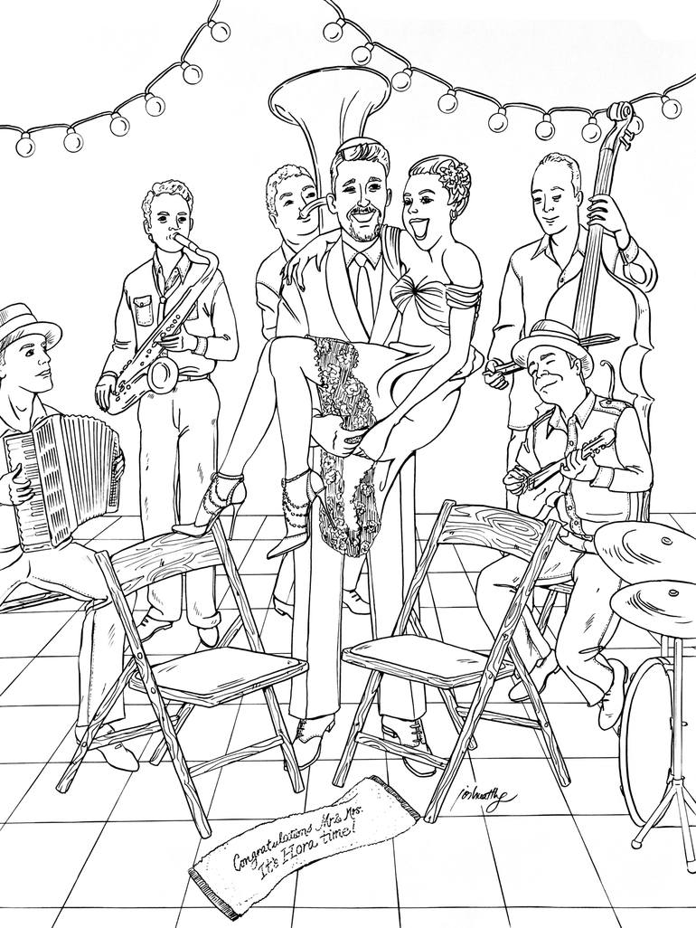 Are you ready for the chair dance? The klezmorims are. The original artwork is 18" wide by 24" tall all hand drawn with a Japanese brush pen on white paper. Ready for you to frame and sent to you via a strong cardboard container. You will love this framed by itself or as a group. This original ...