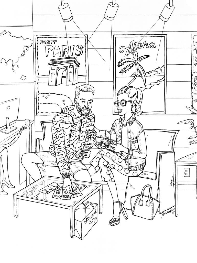 Paris, fiji, machu picchu...no matter where you go on your honeymoon, this drawing will always be your favorite souvenir. This is part of a series in "Destinations Unlimited" and "Weddings". The original artwork is 18" wide by 24" tall all hand drawn with a Japanese brush pen on white paper. Read...