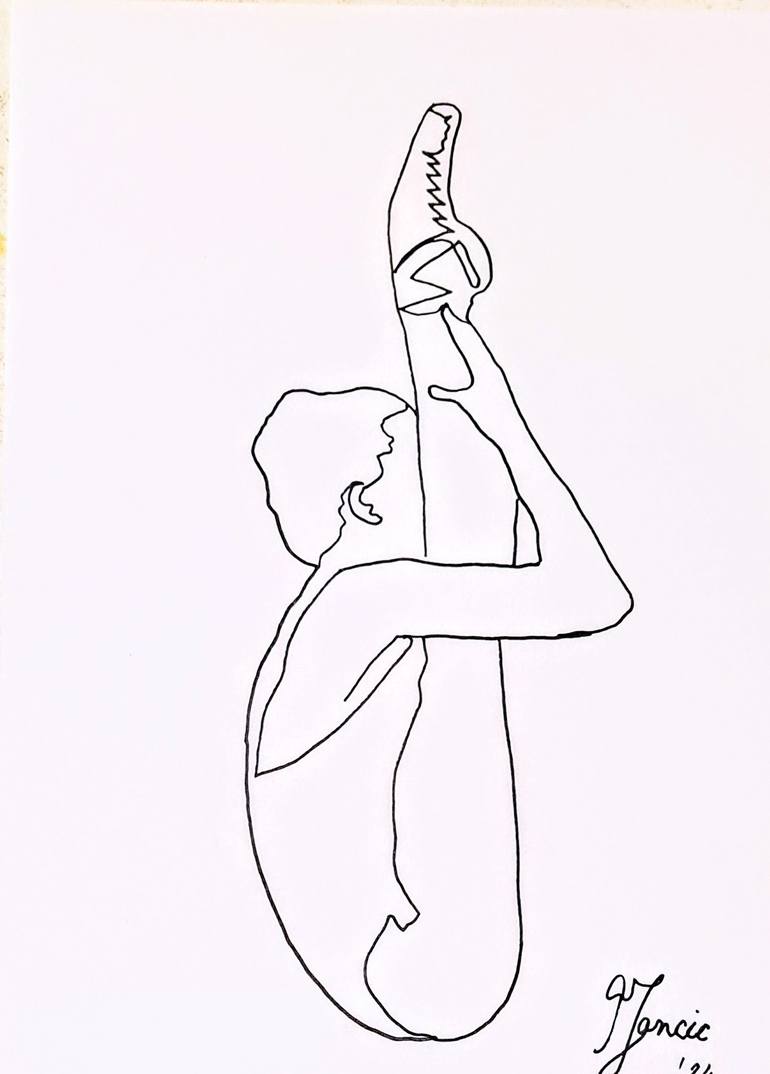 This is an original artwork from the „One Line Drawing“ collection. The artwork is drawn from a single hand stroke, i.e. the whole is actually drawn with a single line. Original artwork Ink on paper FABRIANO 250g/m² 21x29.7x 0.1 cm • 8"1/2x11"3/4 (unframed) Artwork: Woman #11 Subject People and port...