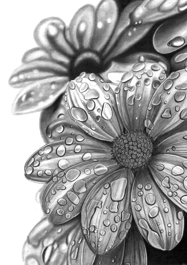 Original artwork description: An original Pencil drawing by Paul Stowe - water droplets on flower petals. Drawn as always on smooth Bristol Board with Faber Castell 9000 series pencils and a Tomo Zero eraser - size for this drawing was c26cm X 37cm Following a 20 year Hiatus Paul picked up his pe...