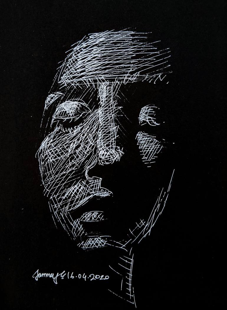 In this series I did some experimental portraits with white ink and black paper. That process was similar to minimalism process to me.