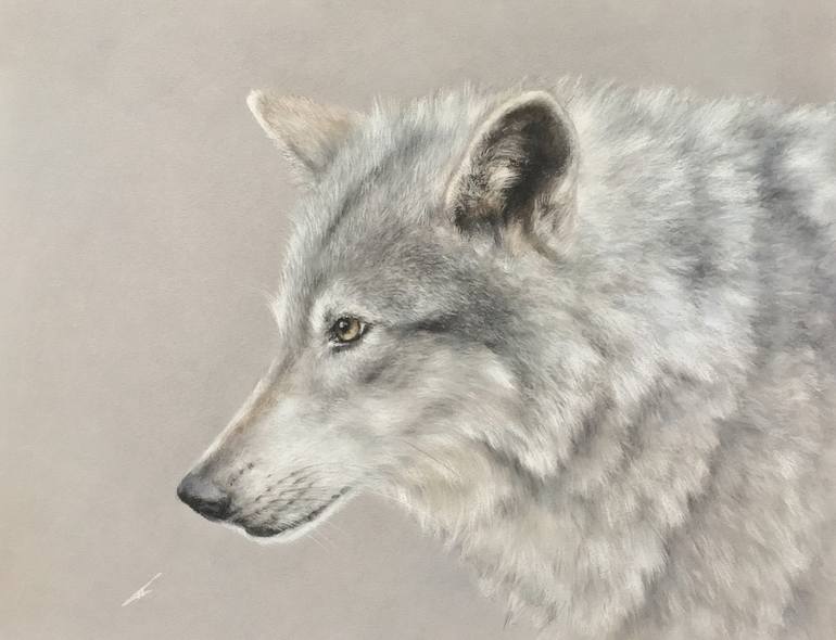 Soft pastel drawing on Canson Mi Teintes paper. White wolf from Alaska. Has to be framed with Passepartout and glass. Keep away from direct sunlight. Colors may vary slightly on screen according to monitor settings. Thank you for taking the time to visit my gallery! If you have any questions, please...