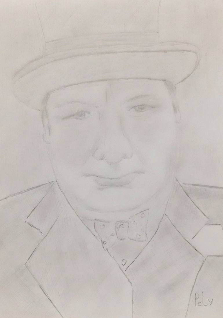 Portrait of Winston Churchill in pencil on A4 paper. Politician, famous person, Former Prime Minister of the United Kingdom.