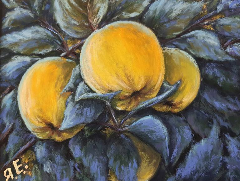 This quince sprig caught my attention. And I thought, why not draw it in the moonlight, give it a blue light. And, it turned out interesting and unusual. "QUINCE IN THE MOONLIGHT" Dry pastel. PASTELMAT, 18x24 cm. The figure has a title and a signature on the back. It will be delivered to you with...