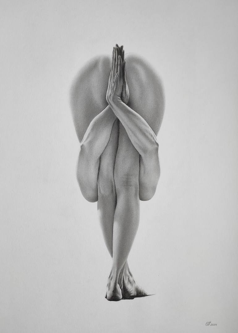 Beautiful girl in an asana. Painting from the series Nude Yoga. The beauty of the female body is always beautiful. Will decorate any interior for adults and people open to beautiful things. Painted with charcoal on watercolor paper. The work is not framed. The design in the photographs is an example...
