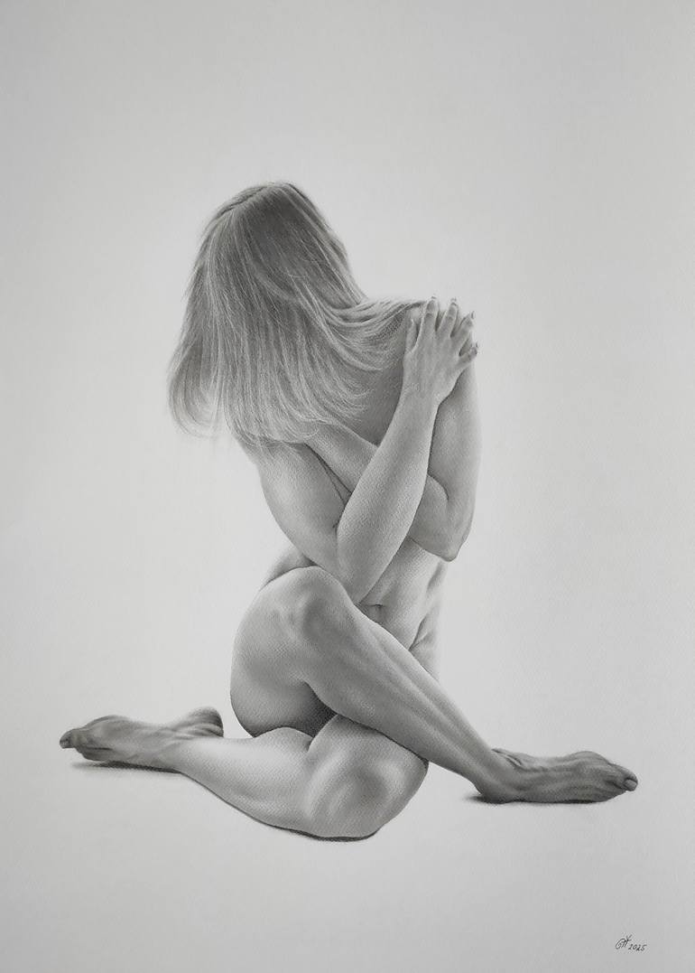 Beautiful girl in an asana. Painting from the series Nude Yoga. The beauty of the female body is always beautiful. Will decorate any interior for adults and people open to beautiful things. Painted with charcoal on watercolor paper. The work is not framed. The design in the photographs is an example...