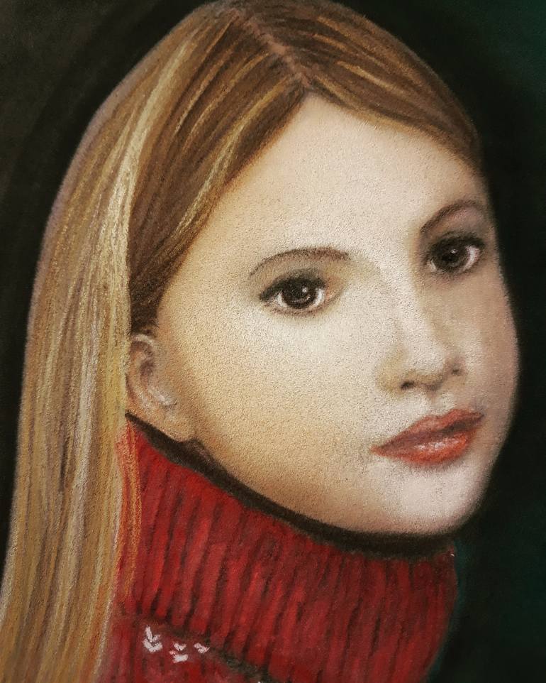 Tecnica soft pastel ad impasto per delineare i tratti morbidi e delicati di questa giovane ragazza dallo sguardo dolce e innocente.