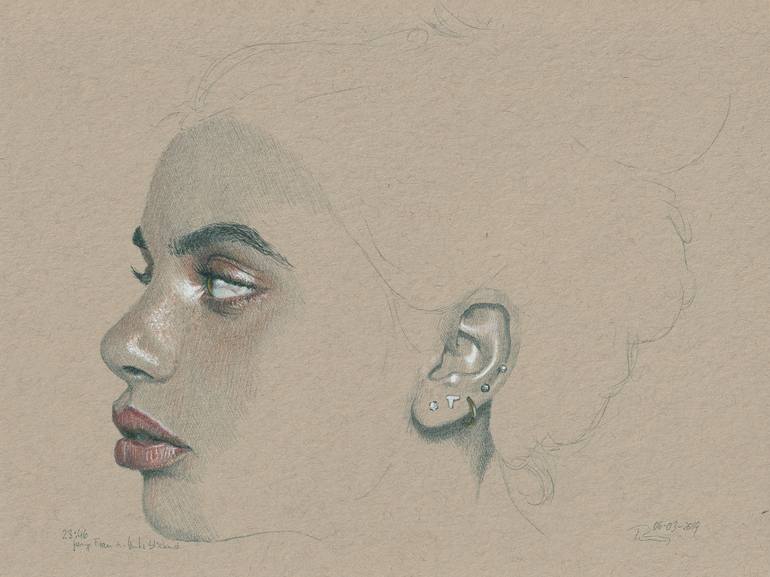 When I look at drawings from the "Old Masters", I can find this issue: woman looks to the left (or right). Well, this young woman with her fantastic lips and the big brown eyes.... Drawing is on toned Strathmore carboard.
