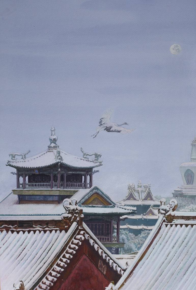 My works is to integrate the abstract and impressionism in the Chinese traditional painting into the classical western water and color painting. the latter of which normally is based on accuracy and reality. as far as techniques are concerned. The similarity of both using the sharp pointed brush and the mixed of color and water provides the possibility of merging the oriental philosophy with the water and color painting. It is hoped this western light result and east painting pattern in one works would be a new vision beauty.