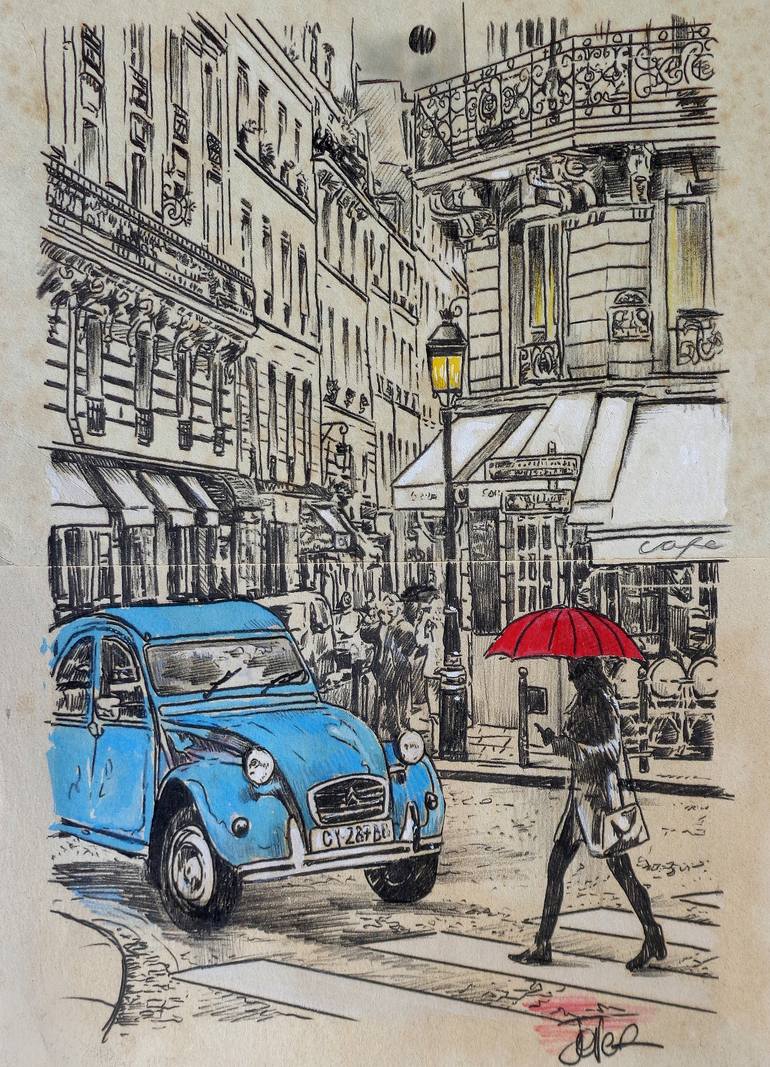 This work forms part of an ongoing series of smaller drawn studies featuring city scenes, buildings, cafes etc of places I have traveled to, many of the basic sketches use to create these small drawings come from my personal collection of travel sketch diaries of which I use to source images that i ...