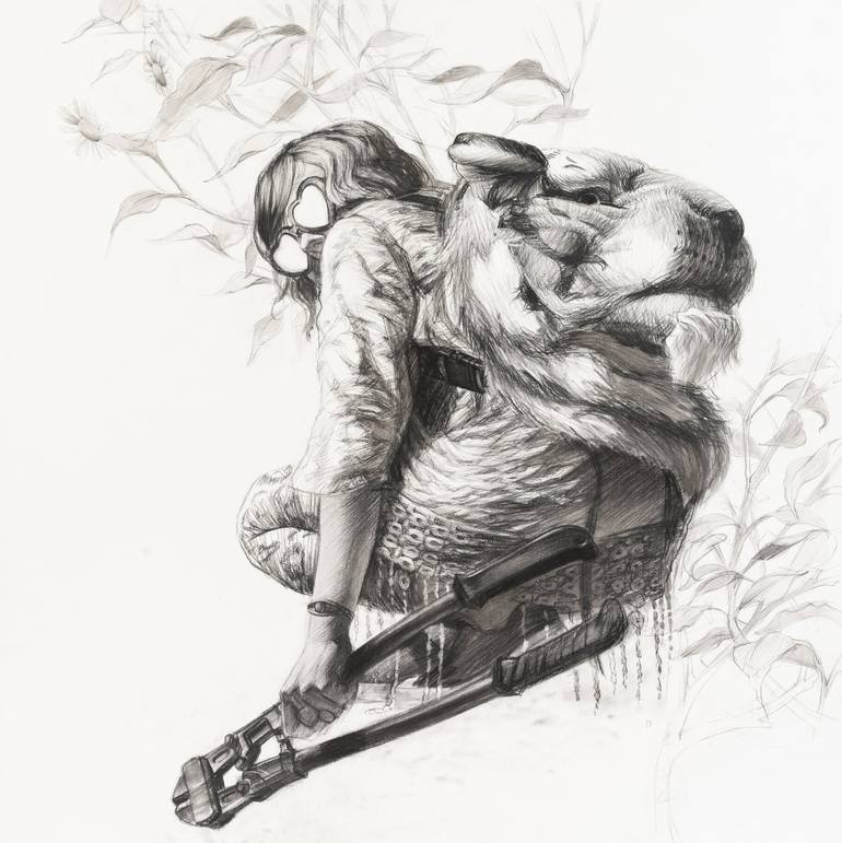 This subject was someone close. She always had a proclivity towards varied textures and patterns. The juxtaposition of the heart glasses and and bolt cutters reference the dynamics of her personality.