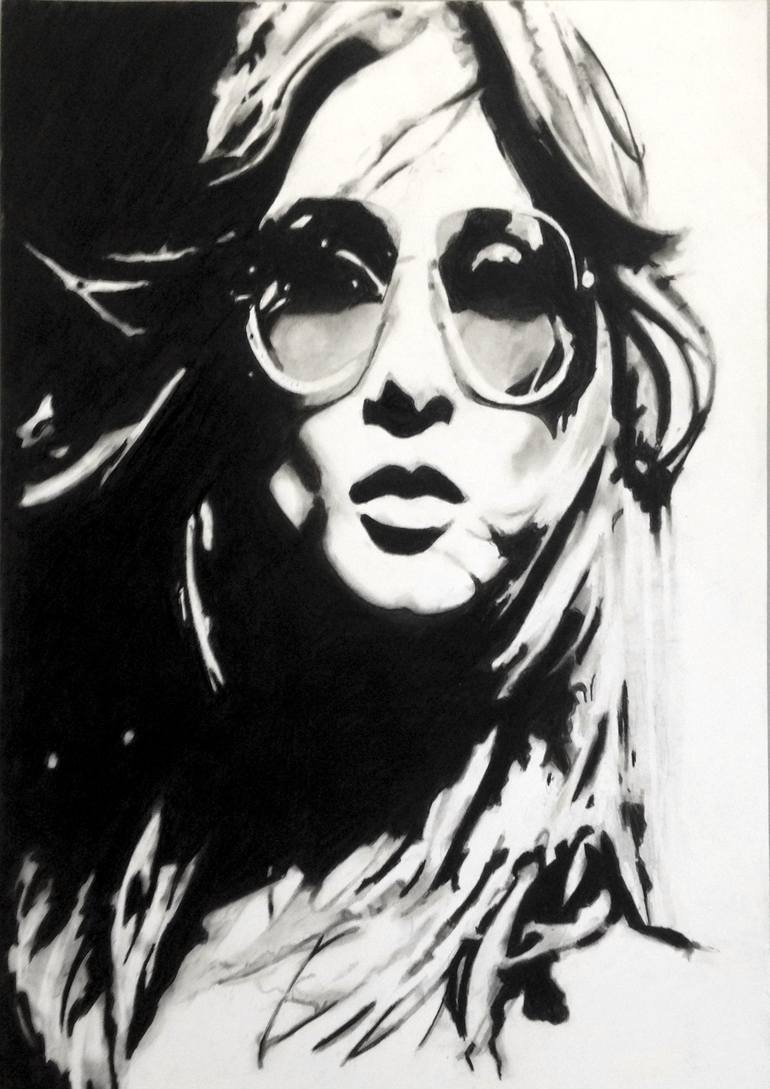 charcoal drawing on paper of a girl with sunglasses