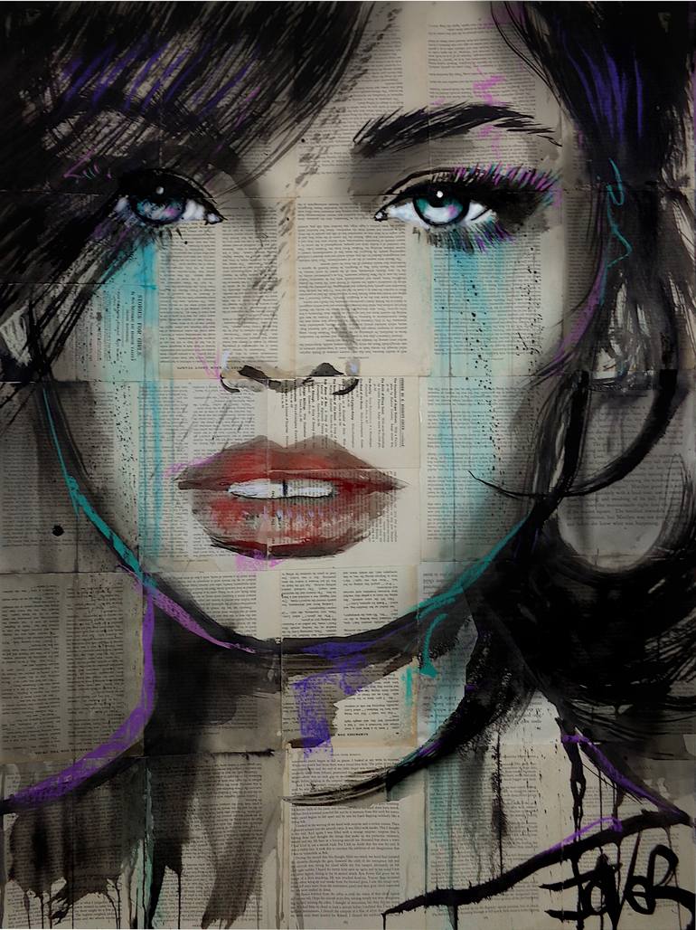 Indian ink , sumi ink, gouache and art crayon on vintage book pages adhered together to create one sheet ready for framing as desired, part of an ongoing series of works created over the past ten years featuring women and their emotions.. very popular with collectors worldwide, I am the ''original''...
