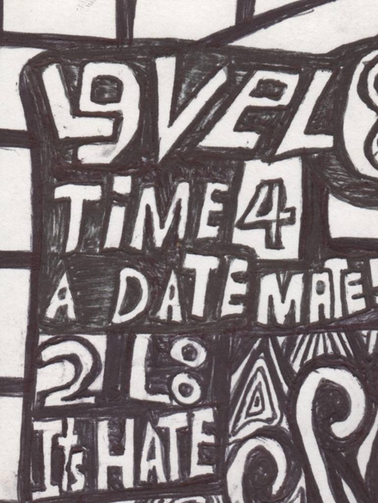 level 8 nv set by Louie.v.t. draw with a heavy hand ,thick and deep lines like no other dark and kinda scary but easy to relate it's level 8 time 4 a date mate 2 late it's hate
