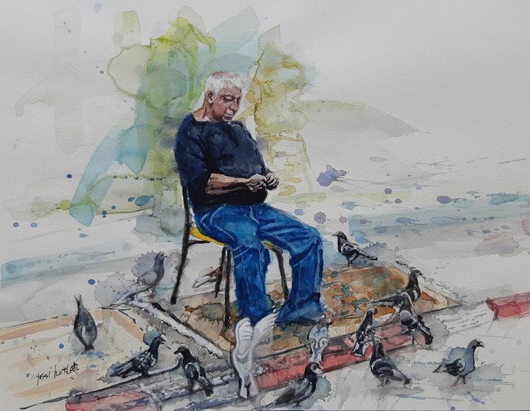 watercolour painting by yossi kotler capturing the moment and the beauty of the person