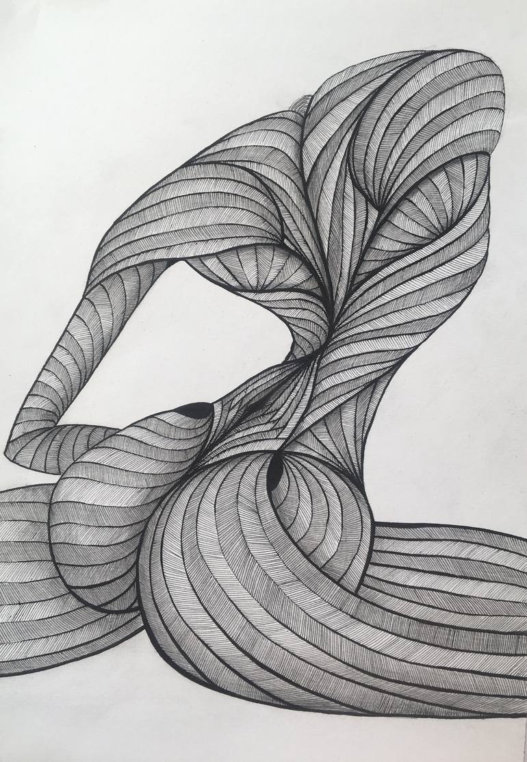 image of a woman from the back. the figure is filled with lines with shading imitating muscles. on white background.