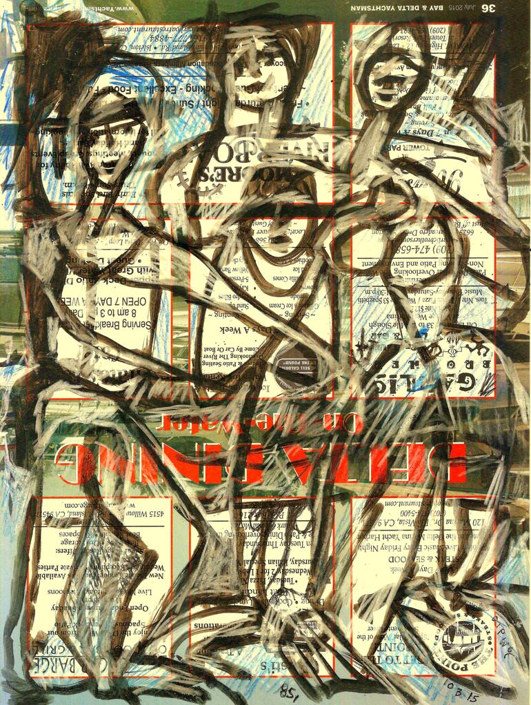 human relations human behavior human interaction mix tech on magazine page - 9x12 figurative expressionism scene de vie