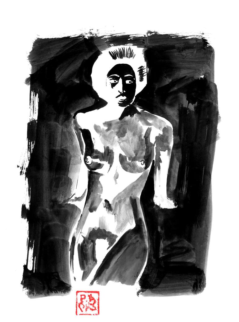 old japanese technique from the 8th century. it consists to draw in a few lines only with chinese ink on paper. this is part of zen culture this drawing was made in negatif and can be visible with the help of an invert filter on phone or image editing software