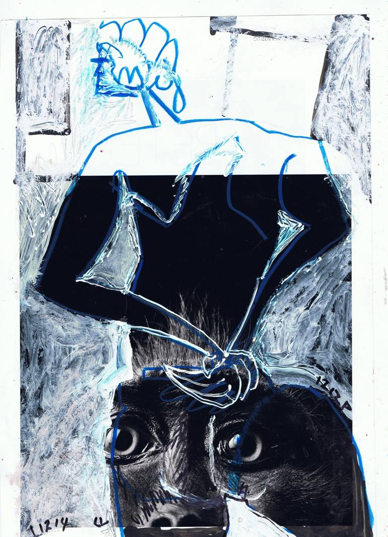 nude figure/back blk/white-eyes in butt-mix media-paper/journal-9x12in